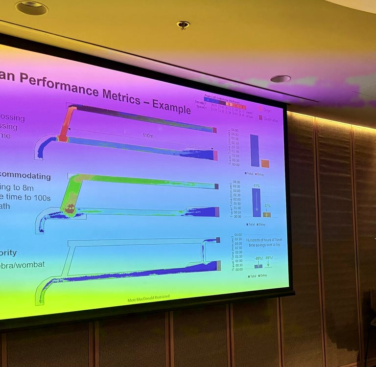 Presented “Optimising Customer Experience with Pedestrian Modelling: Stations, Precincts, and Operations” to Sydney Metro as part of their lunch-and-learn series, held May 2024.